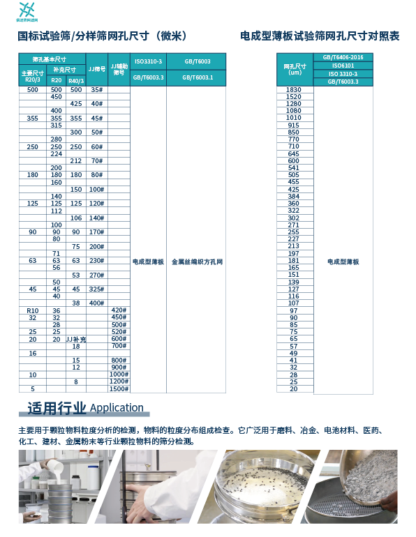 ASTME11、BS410、DIN4188、AFNOR NFX11-501