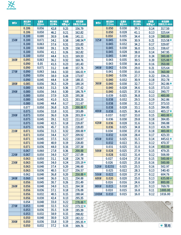 網(wǎng)孔尺寸/Mesh size: